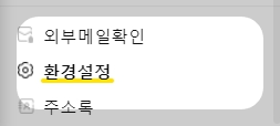 카카오 메일의 경우(다른 메일도 동일합니다) 왼쪽 하단의 환경설정에 들어가줍니다.